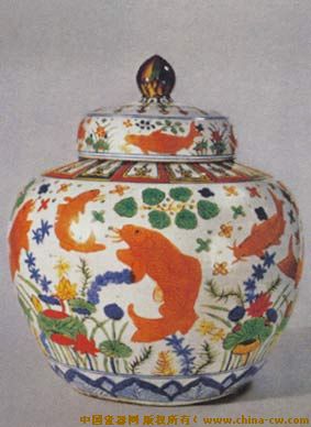 五彩鱼藻纹盖罐(明嘉靖)